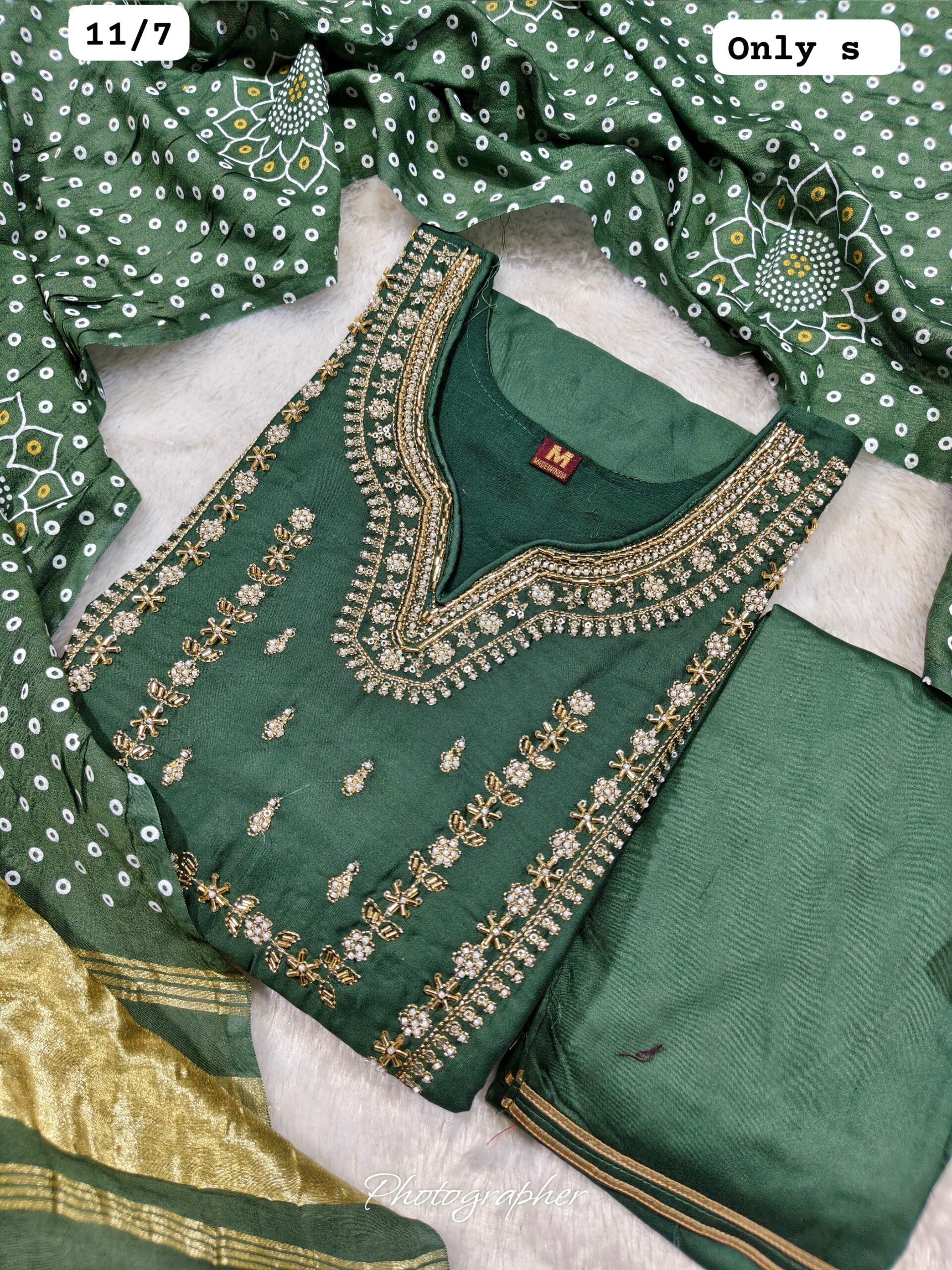 Fabric Type Heavy Gaji Silk Kurti With Full Hand Work